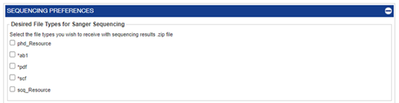 When looking at the order history page, each type of order is color coded by its product line, so it is easy to find the order you want. For example, sequencing orders are marked by a small blue icon, oligo orders are marked by an orange icon, and so forth. Please note that sequencing results are only saved for a limited amount of time. If you are trying to download very old results, it may not be available online but may be archived and available by manual retrieval. Contact us for more information.